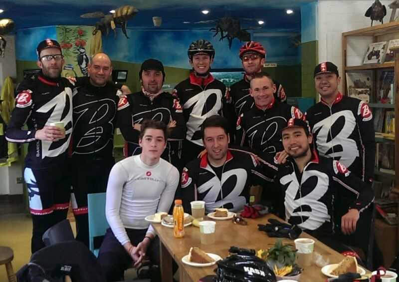 The ride takes on a gentle pace.  Just enough to keep us from shivering, but good enough that we remain focused.  There are new riders with us today, and there’s no point having a fast ride, if by the end of it, you’ve learnt nothing from the people you’ve been with.  Besides, we soon discover our new friends are more than capable.  We lean into a turn and what sounds like whispers, are actually conversations that were spoken moments ago.  The wind blowing thoughts into the air.  We organise ourselves into pairs and new conversations are born.  Before we know it, we’re in Cobham and everyone is looking fresh-faced and relaxed – Happy Baroudeurs.  We take a natural-break before making the necessary adjustments to seat posts.  Now that feels better.