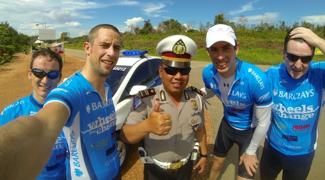 The At the 50km water stop we regrouped, replenished and re-evaluated strategy! Lyndon was suffering with the hills, but fighting on like a true Baroudeur. The rest us were struggling with the 34oC heat (in the shade!) and 90% humidity. By the time we had wrung out wet socks, drank a couple more litres of water we were off again.