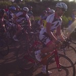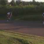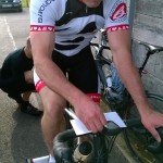 Mike smoothly rides his way up the peloton, but we lose Mark. On the next turn we find him. He’s down, but not completely out. Good man, is giving it all he’s got.