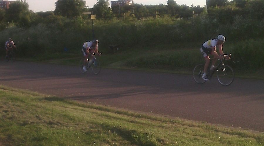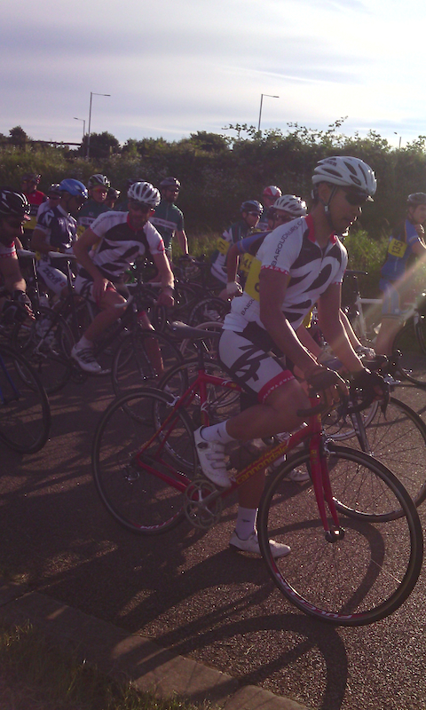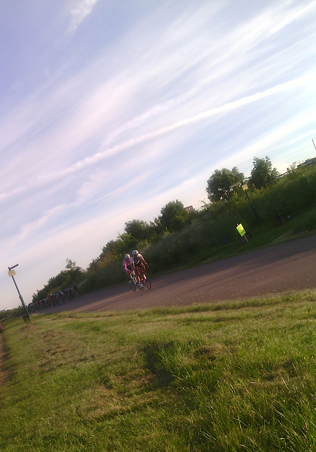 It’s a hot evening that has attracted a lot of part-time racers tonight. The car parks full. The changing rooms are buzzing and the cafe hasn’t got an available seat in it. There’s no other option, but for the crowds to spill outside, by the track, where we are about to race on.