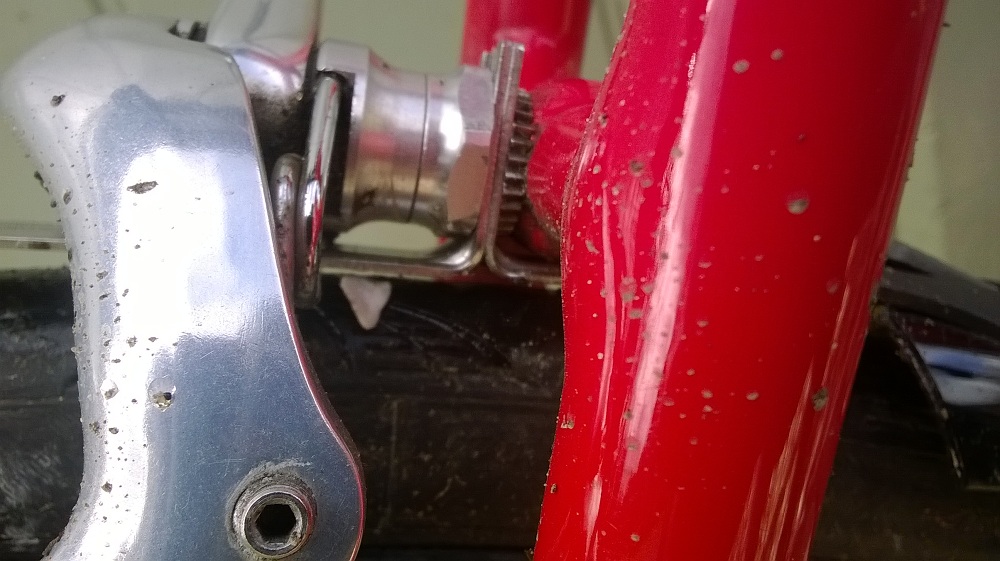 Protection Quality: There seems to be a whole lot of clearance from the mudguard threatening your seat-tube. This accsessory looks pretty nifty at doing it’s proposed job, but falls a bit short. Firstly, it can tarnish your paintjob in just one sitting. You can see from picture 2 above, I was caught short and had to either risk removing the blade, and risk losing it, or use electric tape (yes, I happen to carry some wrapped around the pump), whilst out on our maiden voyage. Of course, a better solution is to use a bike shield. More worryingly, it certainly doesn’t cover half as much protection for your chain-ring, as say the Crud-Racer.