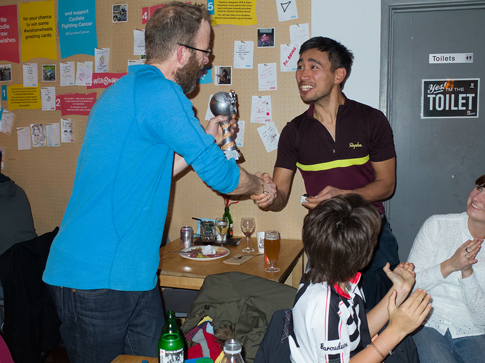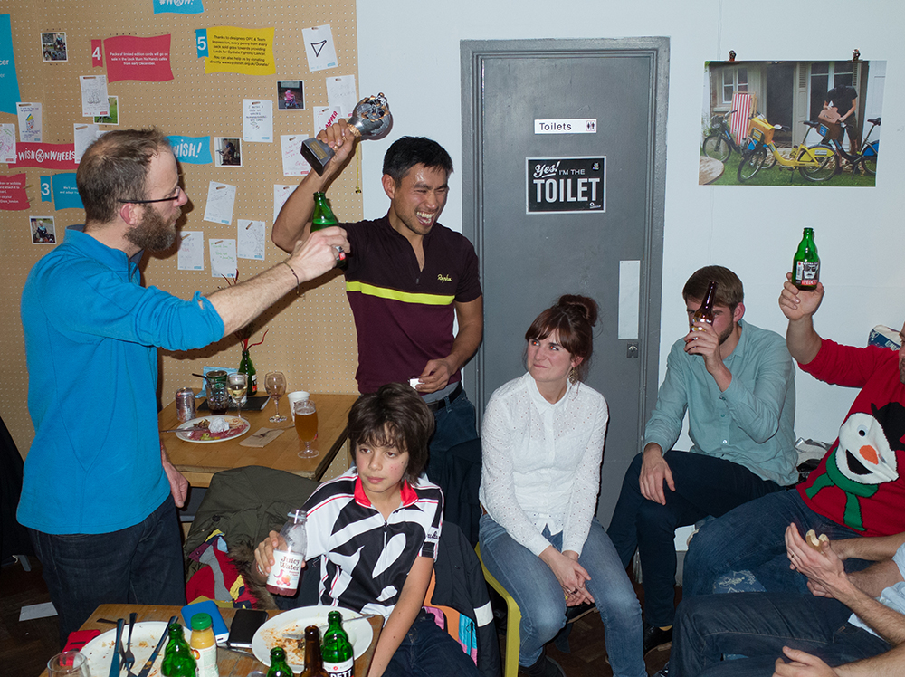 We want to say a big thank you for everyone making it to the Baroudeur Christmas/5th Year anniversary party. It was a terrific night celebrating both team and individual accomplishment. A special thanks to everyone’s significant others, Baroudeurs who were here in spirit, and to Look Mum No Hands for hosting the party. This is what we are allowed to show you…