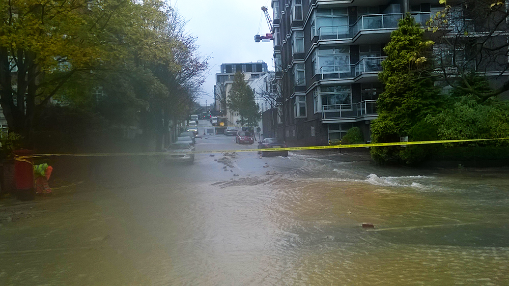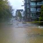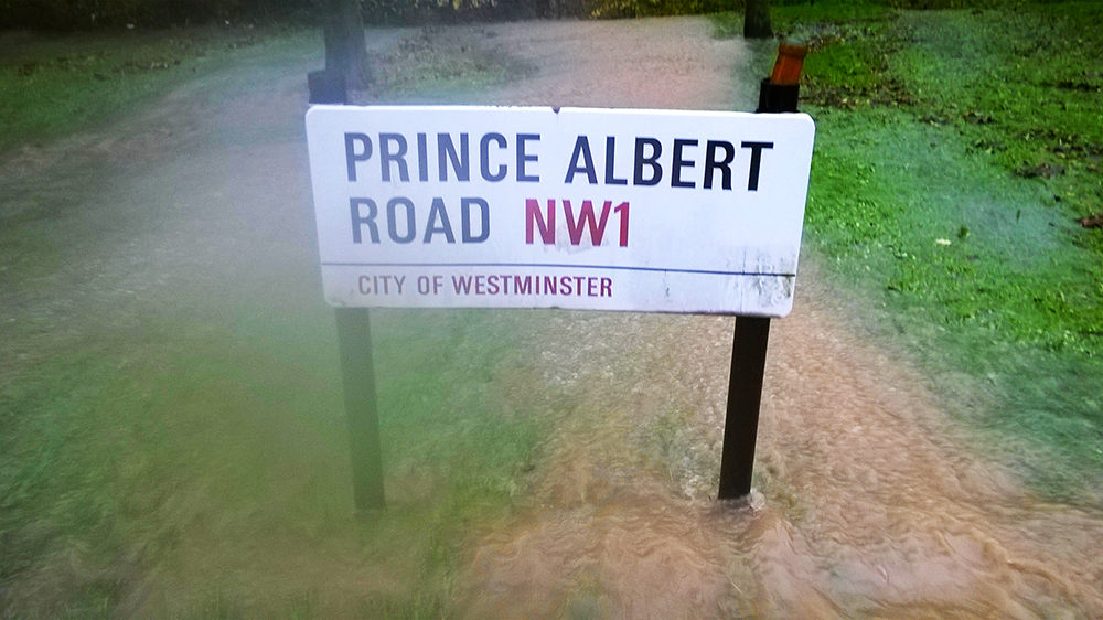 At the very same time, just a stone’s throw away, Prince Albert Road is experiencing an uncommon abundance of water. Something we will discover a little later. Thankfully the climb up Swain’s is rewarding, in it’s own very special way. We get to stretch our legs and are relieved to see fellow riders out. Looks like we’re not the only mad dogs out this morning.