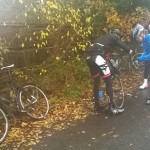 As we approach Swains Lane, there’s an odd sight of 3 cyclists taking refuge under a bus shelter. This isn’t what I pictured when we organised the day’s adventure, but I’m willing to delve into a different kind of weekend. Teammates, Ed and Craig say hello. Rebecca smiles bravely. I can’t help but admire her, or should I be concerned that she wants to ride in these conditions?