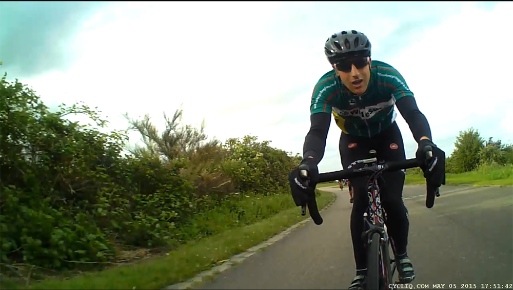 With 25 riders ready to race, we made for the track. It’s a good idea to get there early and do a recce. Learn the feel of the tarmac and how it bends and climbs. Without warning the gales hit us from the side at the first corner, then as we complete a punchy climb, we suddenly come to an almost instant stop. It’s this point we need to remember. It’s at this point a breakaway can be a success or lose it.