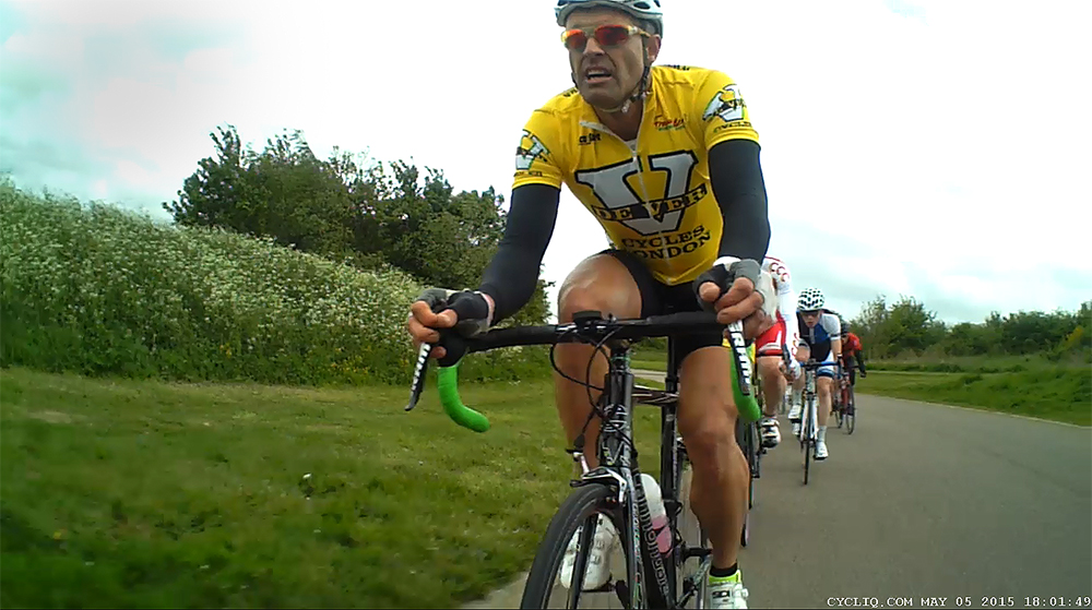 Every attack is fraught by the two of us – but mainly through Ben’s ‘brutalise’ efforts. Eventually, we get the number 2 sign from the commissars’ telling us it’s time to start wrapping this up. Instantly, you can feel the peloton come together, like a shoal of fish sensing the excitement and danger of getting home – quickly! As the bell rings for the final lap, Ben holds fast to the lead, and maintains this as we make the final bend. He burns out the leader, who is left looking to jump back on, causing me to lose my wheel and give in. It’s my fault. I’ve been there before, wasted..