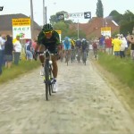 If Stage 3 was presented as a mini Flèche-Wallone, then Stage 4 was the return of the mini Paris-Roubaix. Before we get to the mountains, this is the colossal stage of the Tour. At 220km, it leaves Seraing, Belgium in the sunshine and gets wet just as we leave the cobbles and race into Cambrai, France. Thankfully, for the most part, the cobbles aren’t a problem and blesses the peloton with good weather, but not necessarily comfy. As expected, with everyone, including Froomey preparing well in advance, Nibbles doesn’t perform as well as last year. Everyone gets in the mix for the team – with Cav leading out the peloton to get Etixx up the road and in control. The surprise is seeing Quintana keep with the leaders; later being described as the ‘Little Ninja Warrior’.