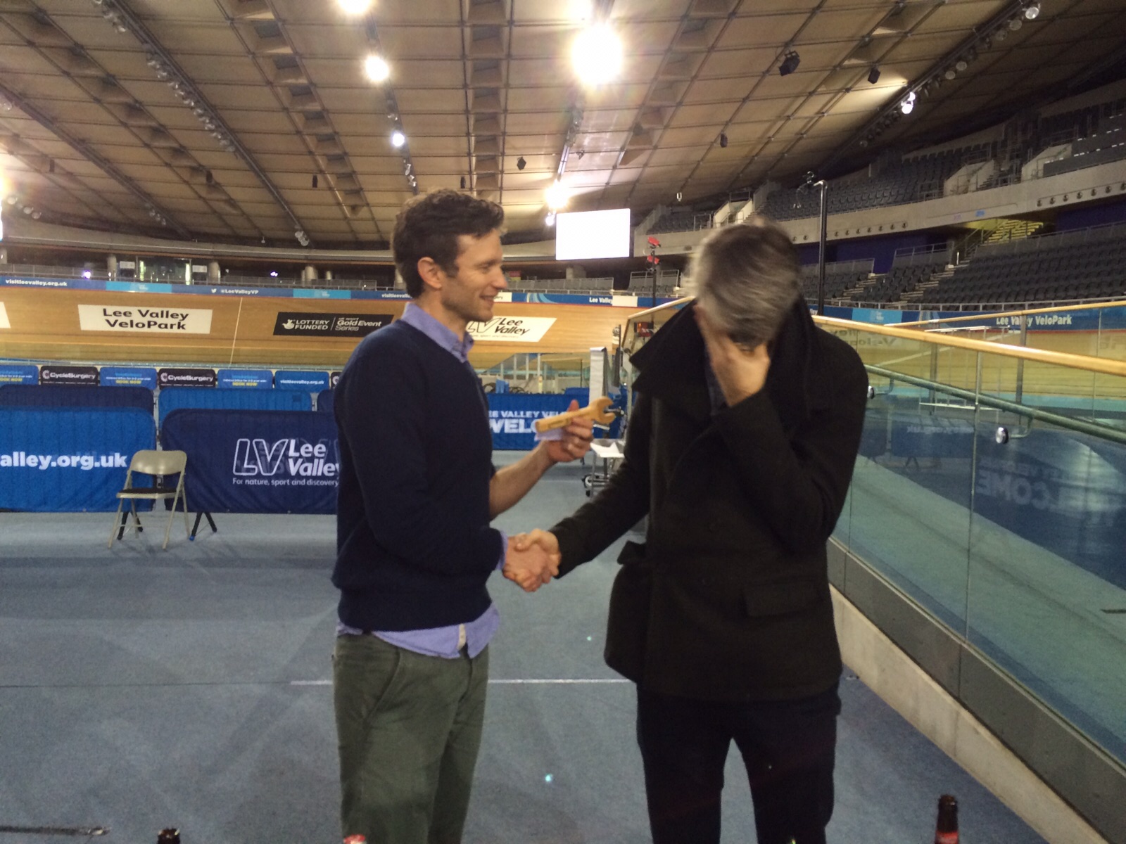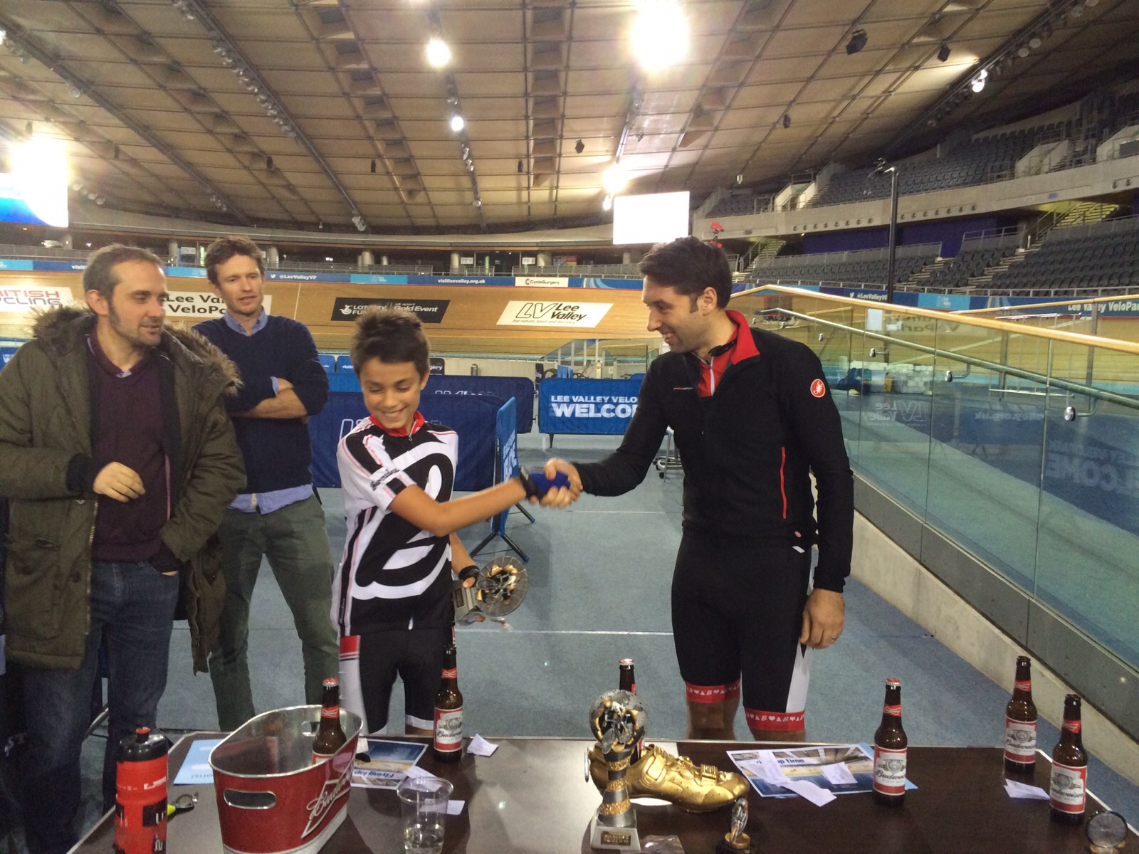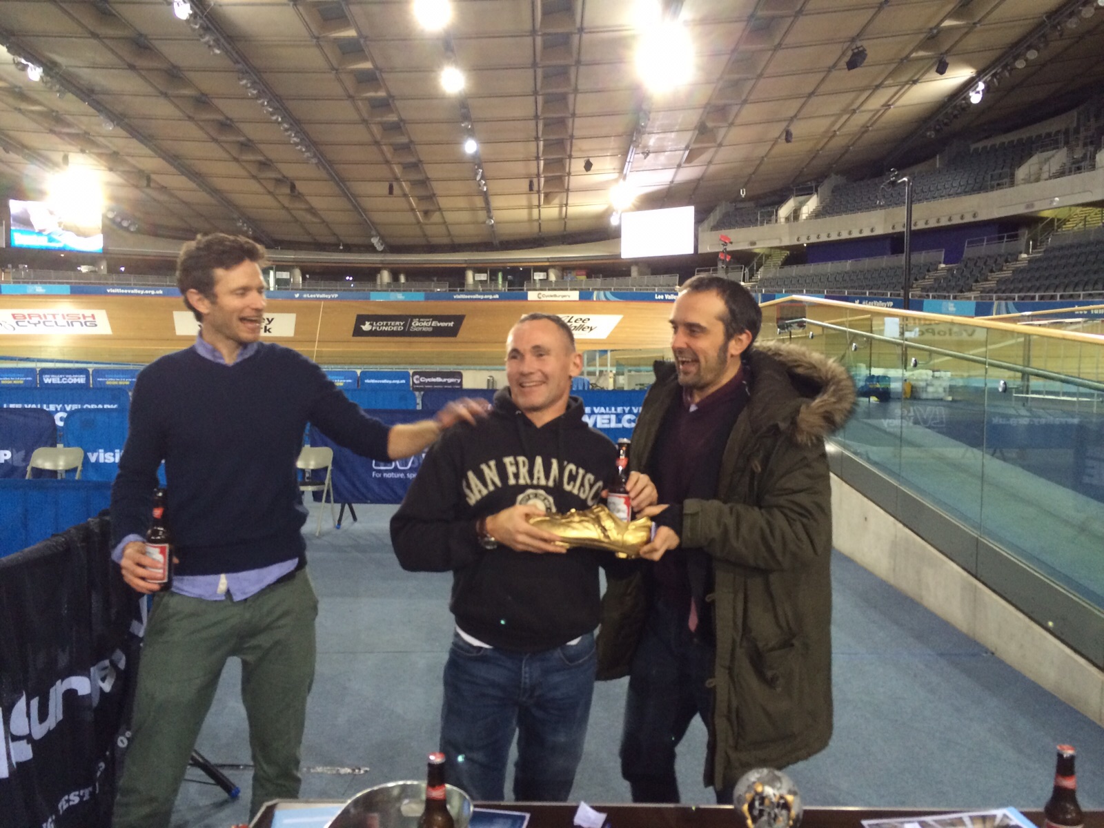 The annual LBCC awards are an exclusive and glamorous event at the best of times – how much more so, when hosted by the Olympic Velodrome and preceded by flying laps as a warm up act. The prize categories are already well-established (though subject to amendment without notice) and the system of nomination is as famously transparent as Froome’s VO2 and power data. A series of VIPs announced the winners, and celebrations ensued. This year, the range of enviable prizes included bespoke LBCC stem caps courtesy of @kapzguru. elaborate trophies, hand-carved artefacts, 24Kt Sidis and beer.