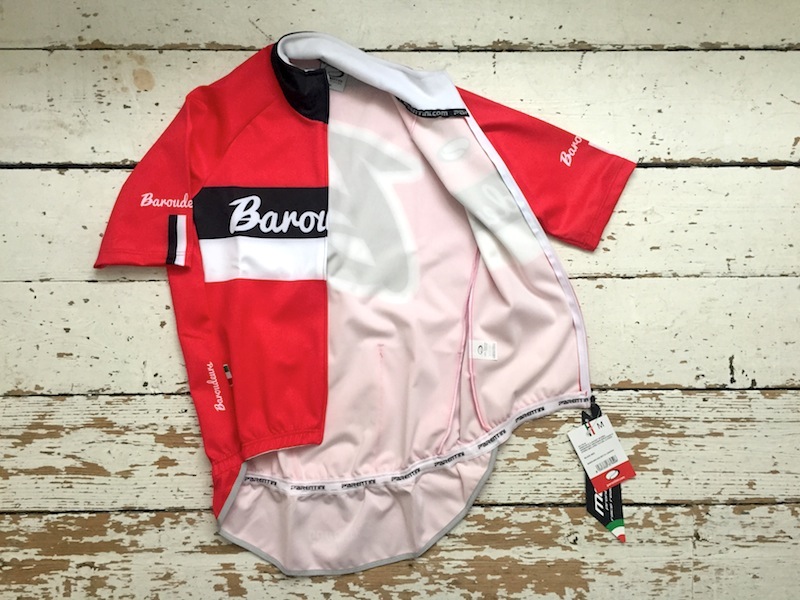 As a reference, I’m 5’9, 75 kilos, with a 97cm chest, and according to Parentini my sizing should be leaning towards a medium.  The Captain pictured above, is 6’2 and 73 kilos and is seen above wearing a medium too.  It took several comparissons of ‘umming and ahhing’ between the medium and the large to ensure the right fit.  After all, Parentini are keen to point out that in order for the jersey to do its job well, it needs to be ‘race fit.’