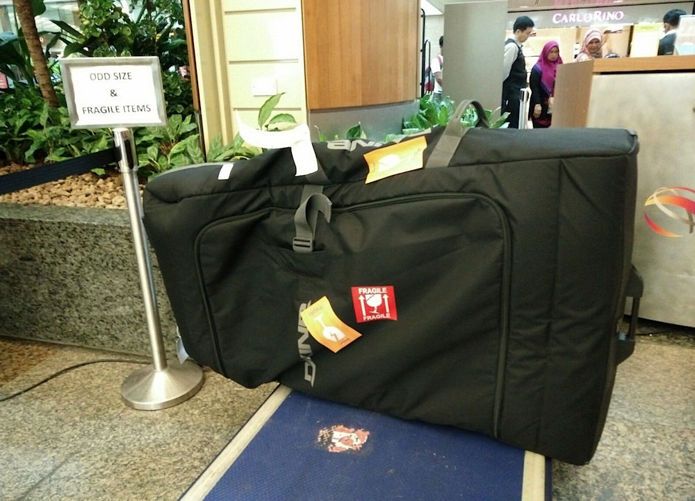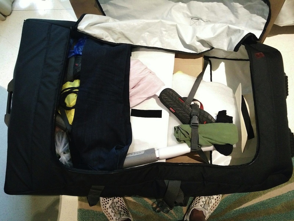 Without the structural support of an interior frame, the bag will sag. When would this happen? Well, if you’re picking up, or leaving the bike, then the bag is murder to roll. You find yourself carrying it, and after a while, 7.7 kilos can hurt.The lininig of the bag is white. This is great, as a contrast to your bike and parts. Even if your bike is white, there will still be enough contrast. The down side is that the wheel bags get dirty easily. Avoid this by keeping your bike clean before packing, or be prepared for some elbow grease later. Even with a hard-shell-bike-box, it is alway recommended that you add extra protection. This could be foam, bubbly wrap, or your clothes.space