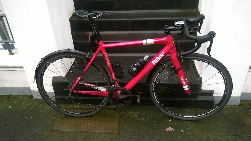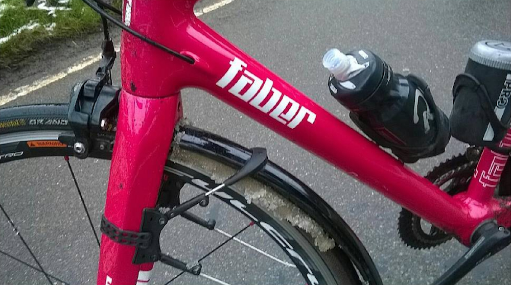 My bike is a Faber Impel which carries all the mod-cons of a road bike: with funky tubing shapes, which unfortunately limits the number of options available for mudguard protection.  With bike brands making clear distinctions between road, gravel, adventure, and now ‘road+’ bikes, tyre clearance comes at a premium with this road bike.